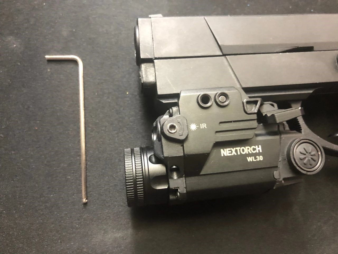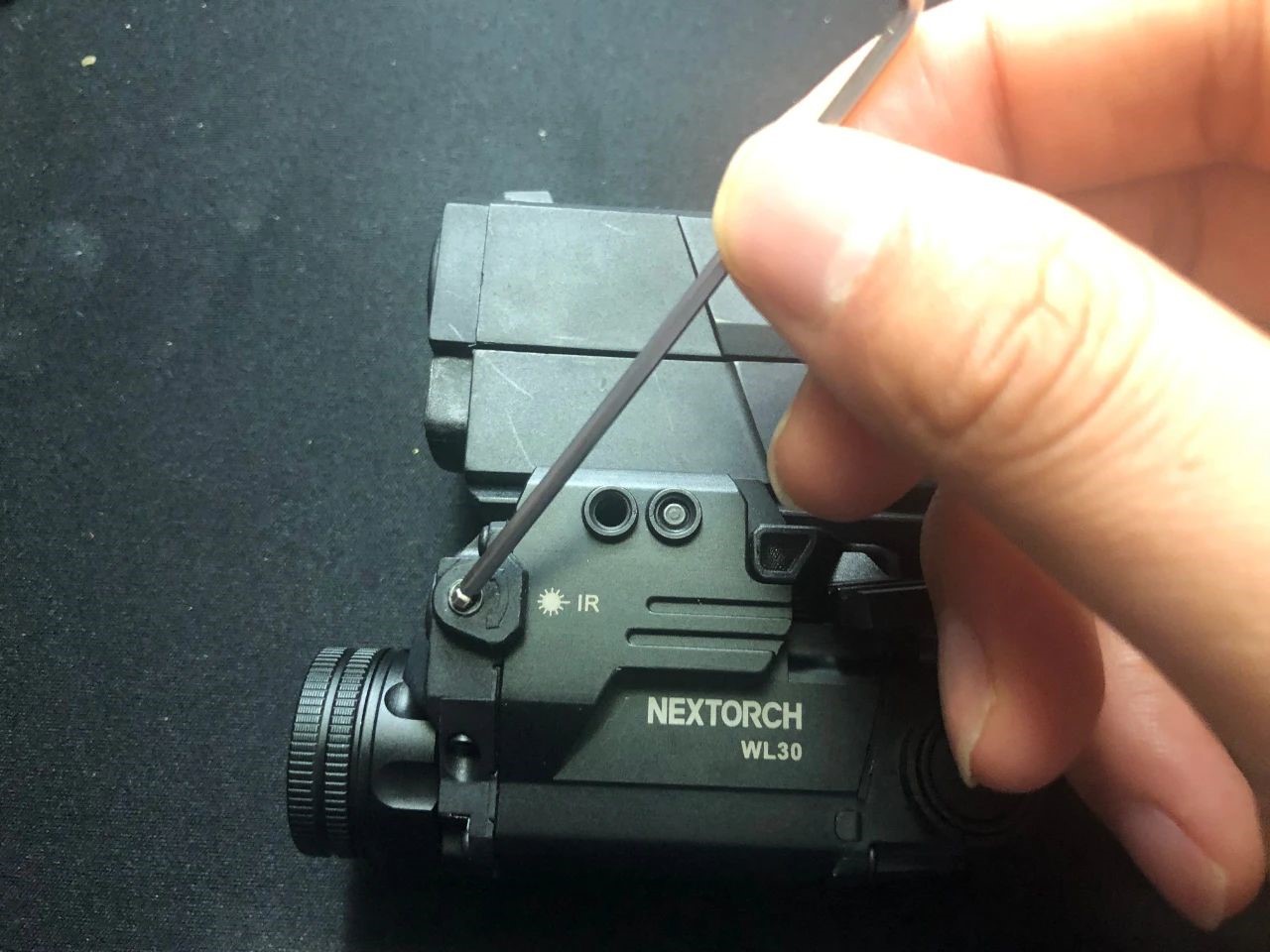 随灯会有附赠六角螺丝工具,这里切记收好它,我就是因为疏忽大意给弄丢了,所以买了一整套大大小小六角工具来匹配......它的作用就是校正激光指示,问题是怎么校?个人认为,可以10米距离射击,看激光的光点与弹着点能否合一即可,或者用校枪器,25米距离校枪器红点与WL30绿光点或红外光点重合即为校准。校正是一个比较麻烦的事情,尤其是IR灯校准,如果没有校枪器,就要搭配夜视仪一次又一次地进行调校,直到校准为止。凡事有度,毕竟手枪不是狙击枪,近距离射击不要错的太离谱即可。