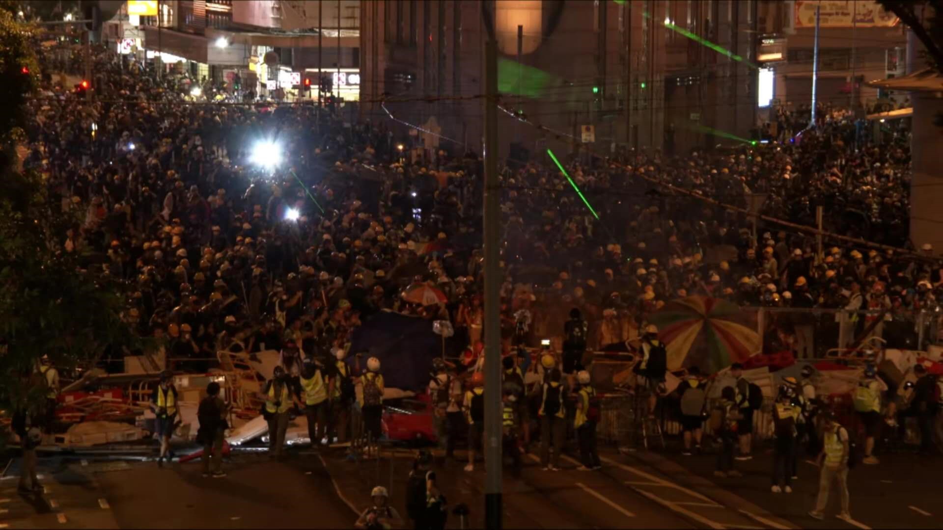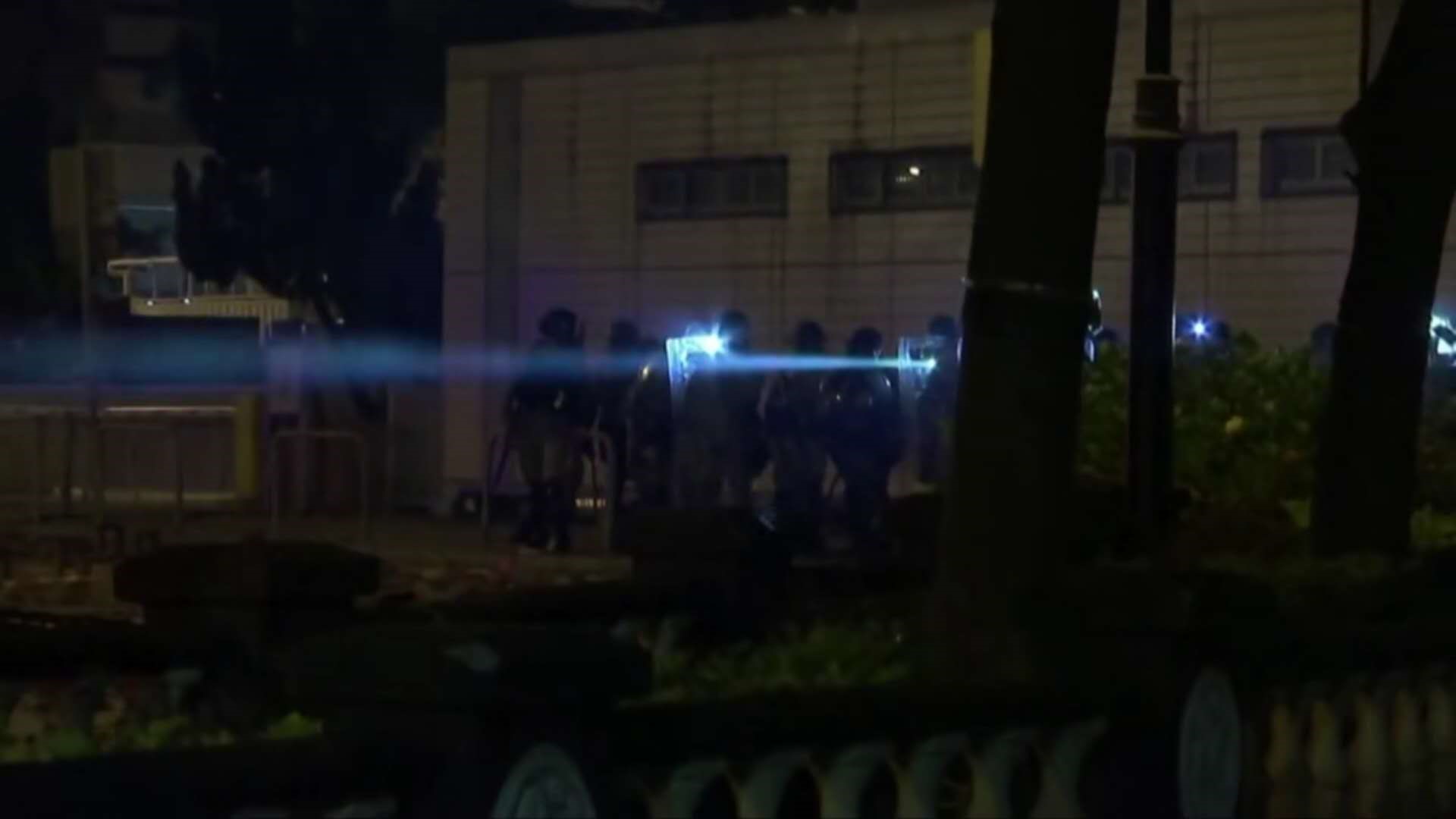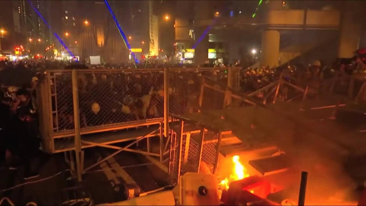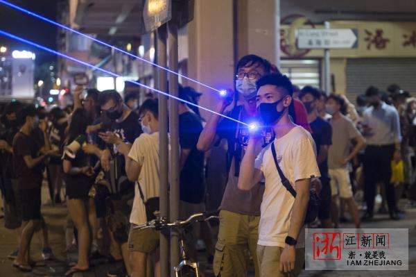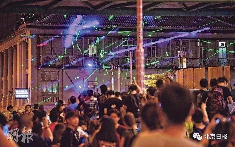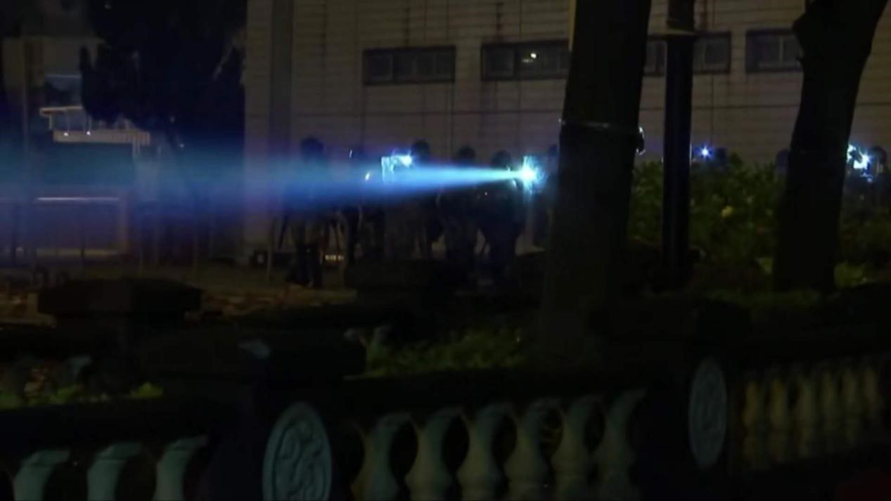 暴乱分子使用强光手电和高功率激光发射器干扰警方