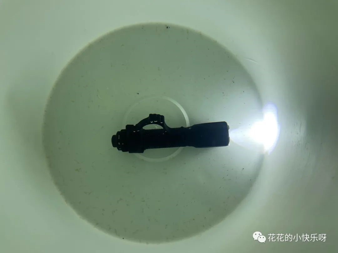 锁闭锁定按钮,手电在其内牢牢待着,大力晃动也没有声音。接近密捕地点前,可以将按钮锁闭。