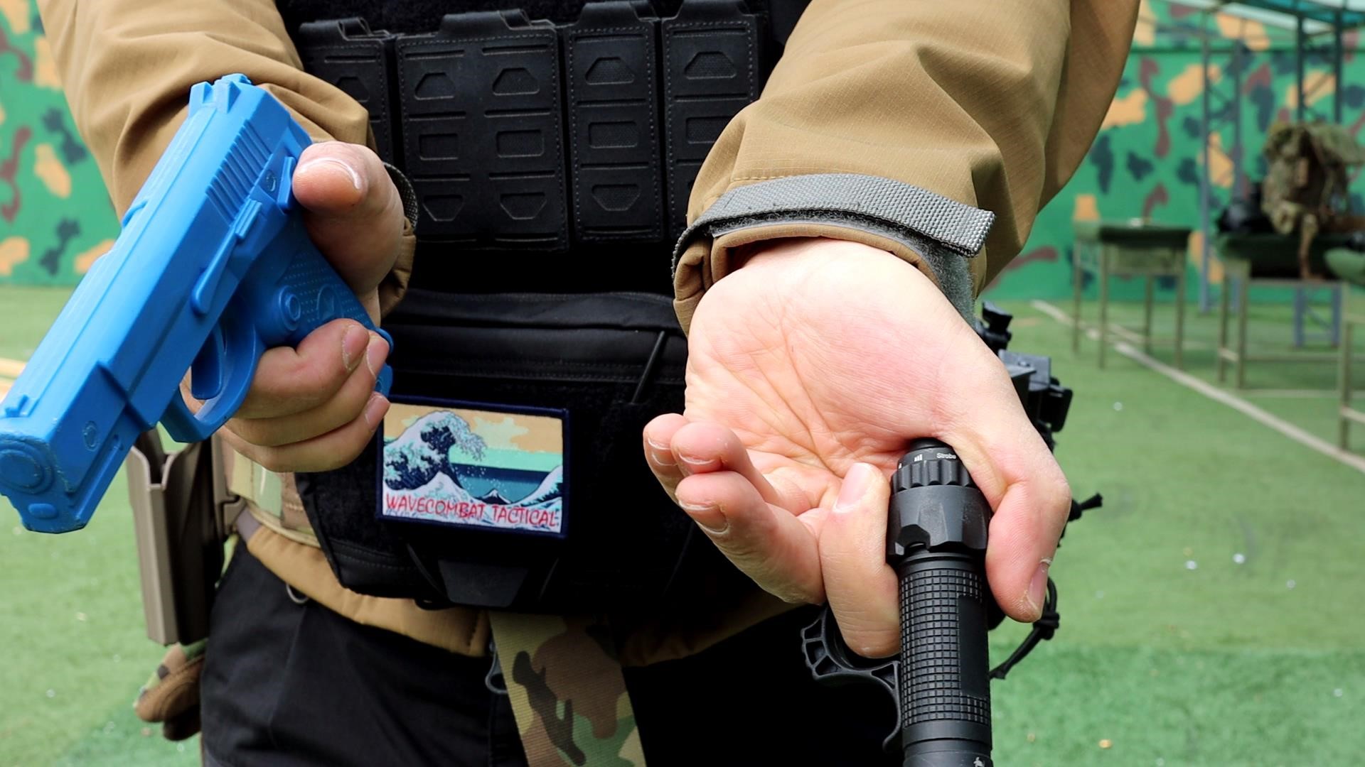 笔者第一次对手电的战术指环有印象,还是看教主的视频学习时,好多年了。战术指环的作用主要分为三方面:一是持手电的弱手,尽量辅助稳定持枪手的同时,既能实现快速开启手电,以便减少自身暴露时间,又提高低光情况下指向性射击的精度。