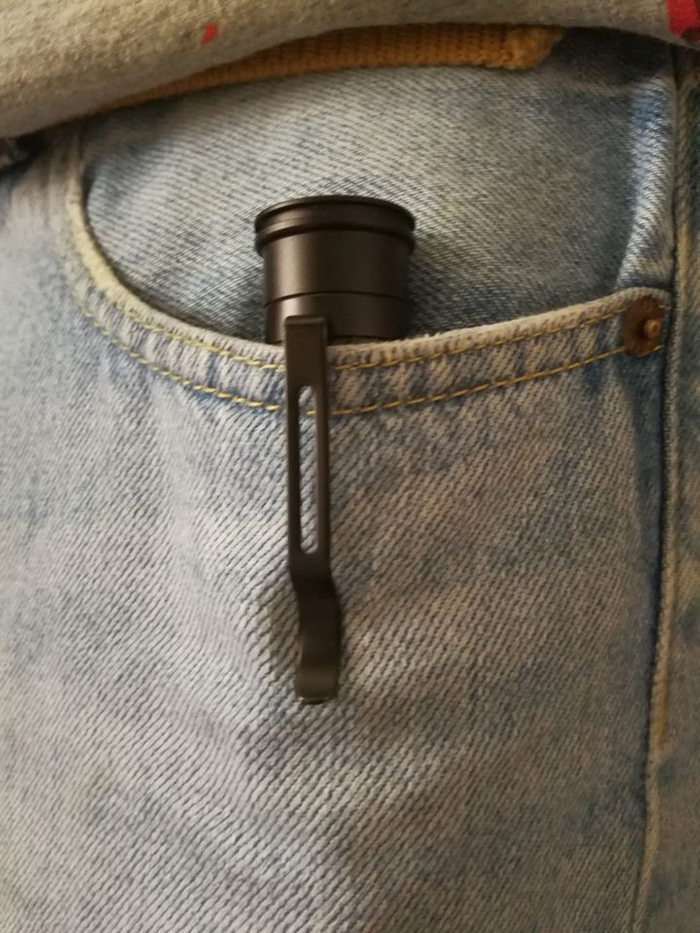 棍柄上有一个抱夹,这个小设计可以让使用者无须借助棍套等附件,就能把棍子插挂在腰带或直接插进裤兜。