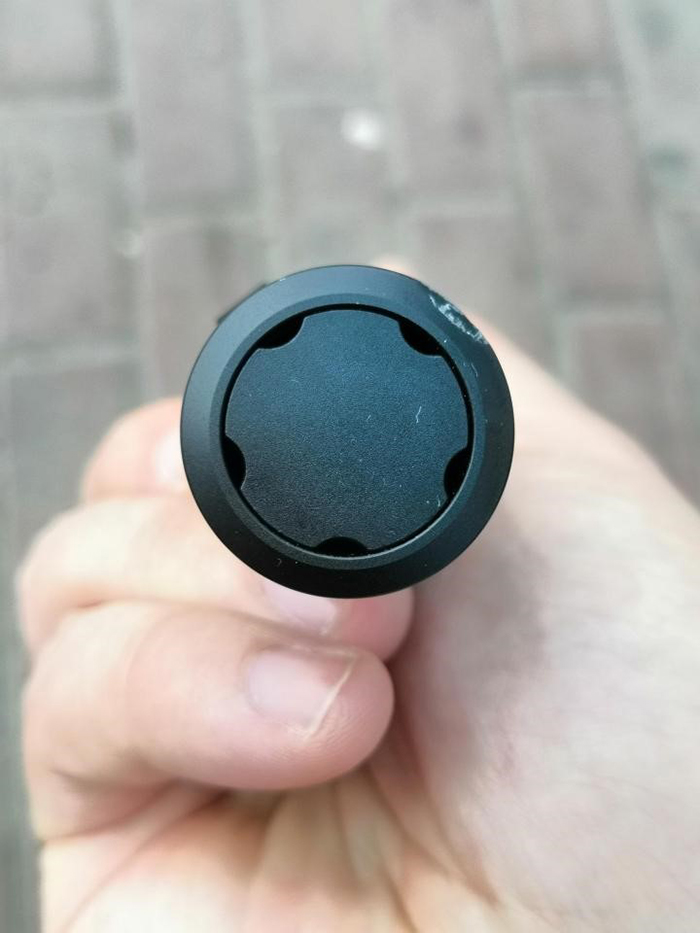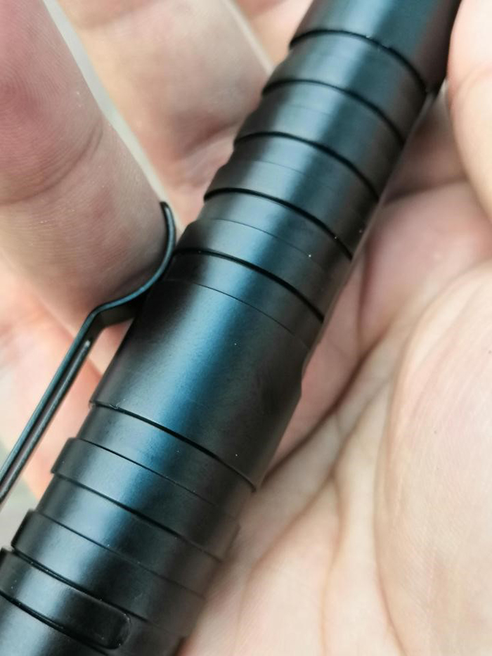 除了棍身的闭锁结构外,打击头的设计与纳丽德TA30电筒原理一脉相承,顶端位置有一个陶瓷珠打击头,可以轻松击破钢化玻璃,用于破窗很实用。