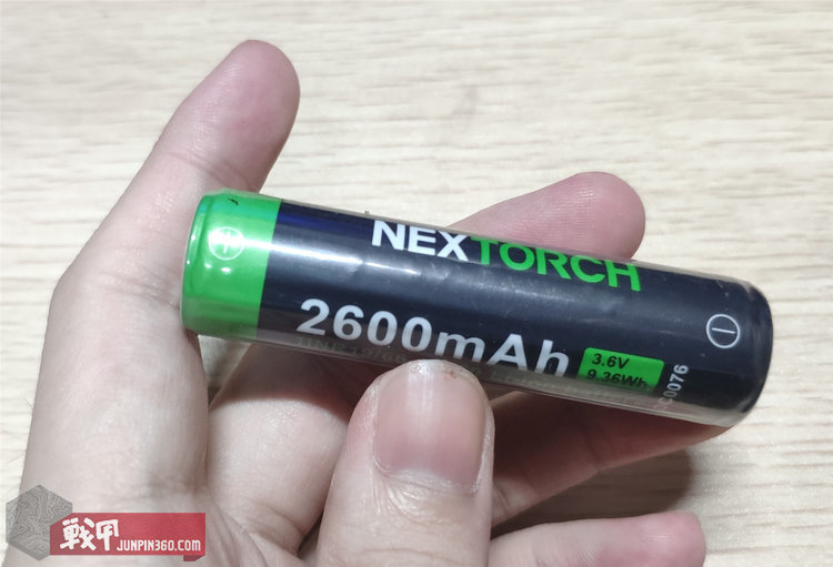 原装带的电池是一节3.6V 2600mAh 9.36Wh的带保护板18650锂电池。包装也是纳丽德自家风格。印刷着logo与参数的塑料皮包装外还有一层透明皮。可能是用作耐磨的,也可能只是外包装。两端电极都是露出来的,不撕掉也能用。我就没撕。