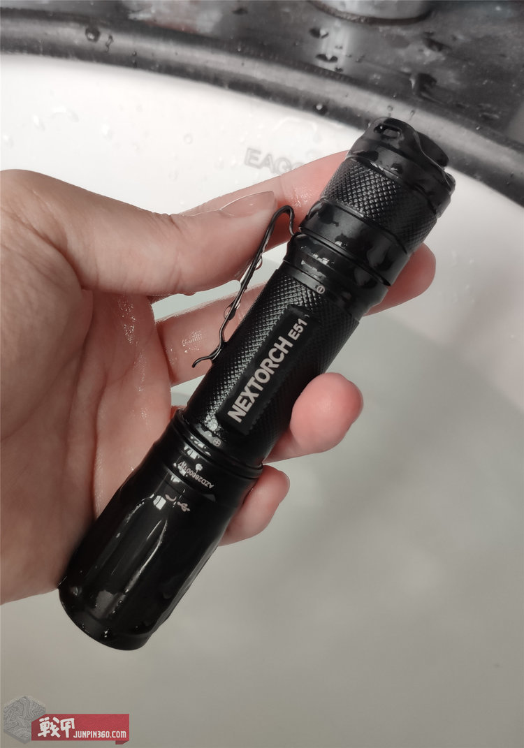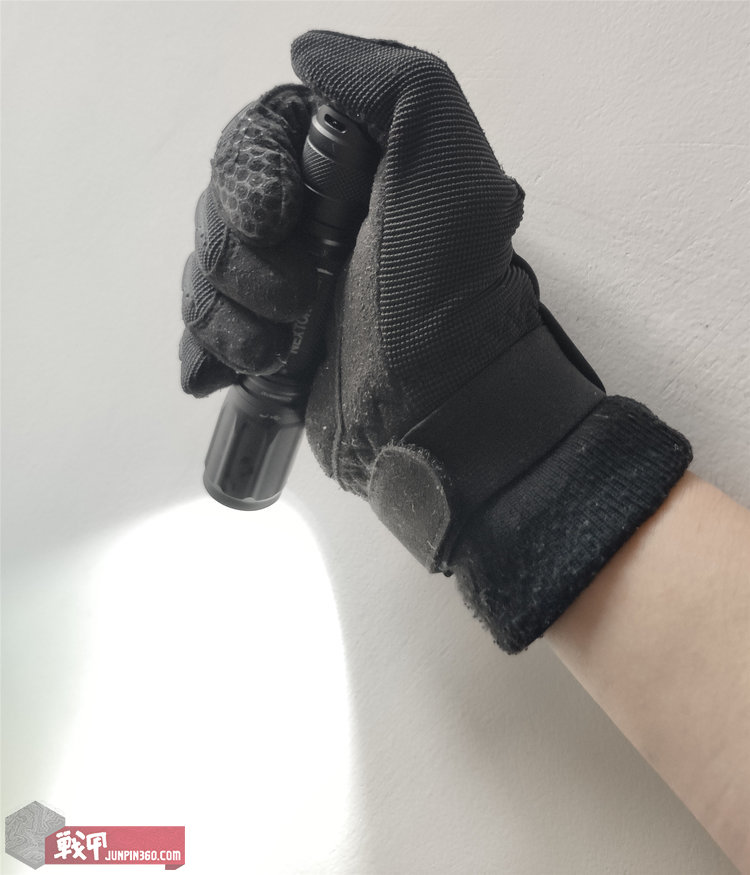 作为便携型直筒,便携性和操作方便性是重中之重。E51筒身中段有滚花防滑纹。后端的尾按护翼对操作也没有明显遮挡,即使佩戴较为厚重的手套,也不会影响操作。