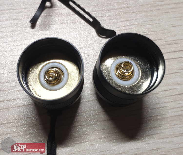 这款抱夹我第一次接触时候(TA30)还闹过笑话。由于TA30的特殊尾盖原因,没有挂绳孔。所以只能装在这款抱夹的孔上面。而无论我怎么用力拉扯都不能把抱夹扯下来(就那样拉扯抱夹没变形也是挺厉害)。我取不下来抱夹,而穿绳孔太小,还紧贴着筒身。没办法,只好用了很小的镊子和穿针的工具废了半天劲才装上手绳。本想记下这个设计不方便的问题反馈厂家,但接着拧开后盖准备装电池。一看才意识到它的设计就是拧开后盖后根本不用什么力气就能取下来。而拧紧后盖后,无论怎么用蛮力都取不下来,这就是夹子设计的精妙之处了。