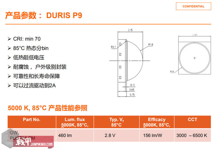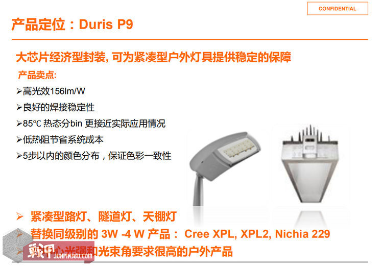 从供应商的宣传文档中可以看出它的定位于紧凑型照明产品,具有高光效,低热阻的优良特性,小核心适合远射类产品。还直接写出了可替换XPL和XPL2。