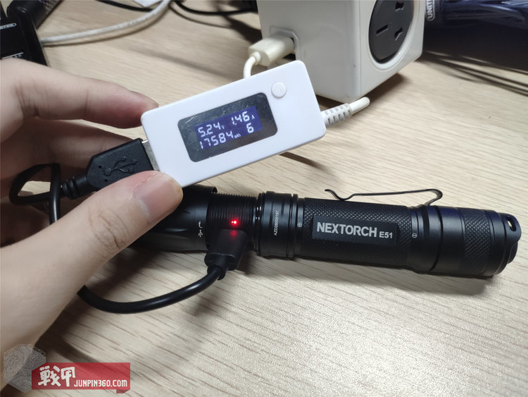 首先,19款E51的充电峰值功率可以达到7.65W(5.24V 1.46A),对于单节18650电池,已经很快了。插入充电线即可开始充电,红灯为正在充电,绿灯为充满。智能自停,不会损害电池。