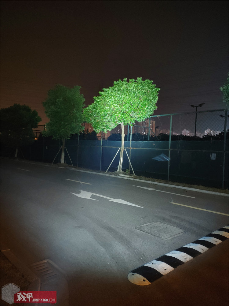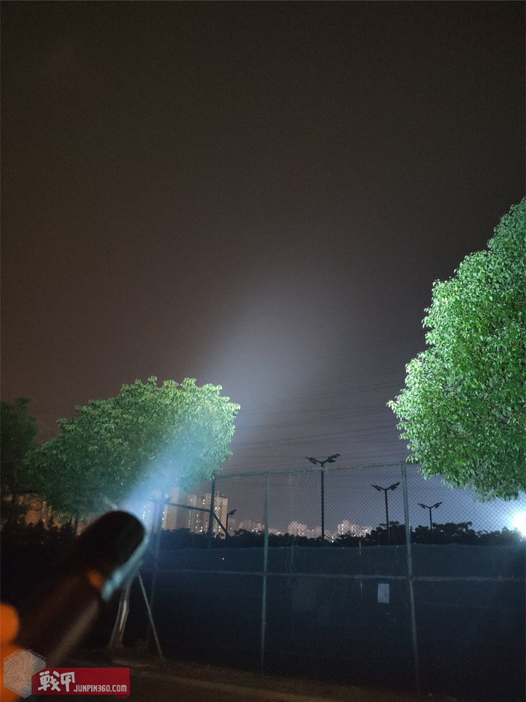 哪怕把手电聚光区移开,用泛光区也能照清晰叶子。强大的聚光区可以在正常的空气环境下直接打出清晰的光柱。