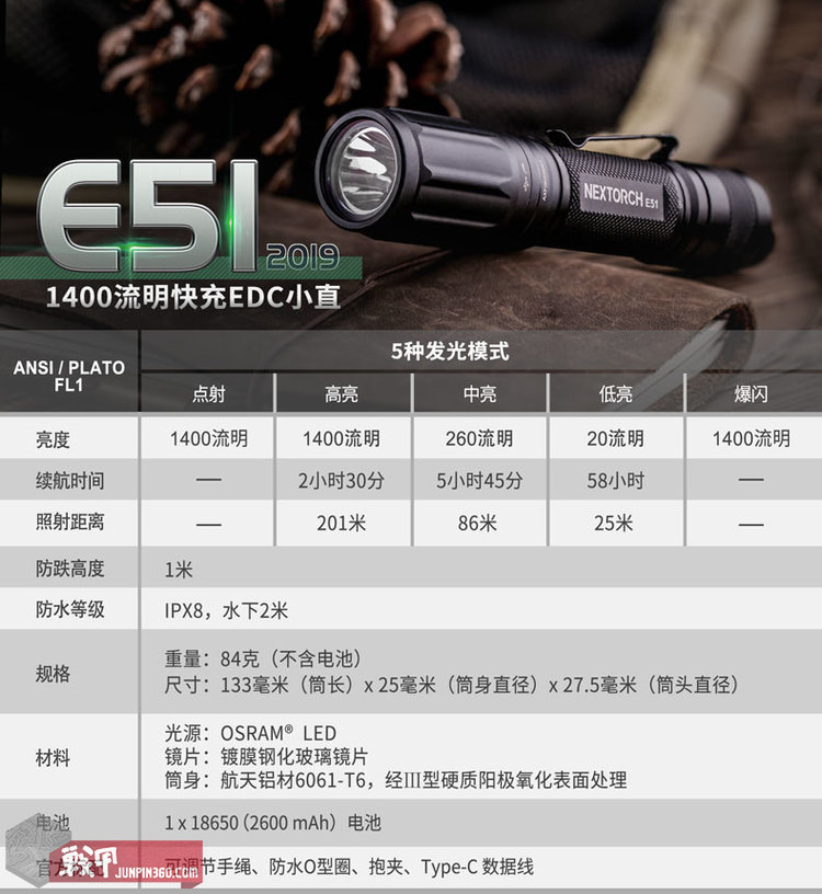 以上就是2019款E51手电的测评了,本身是个均衡的木桶,现在又靠新品灯珠提升了本来不短的板子。在把漏洞补上完善了很多细节。让本已经成熟的小直市场上又多了个有力的产品选择。