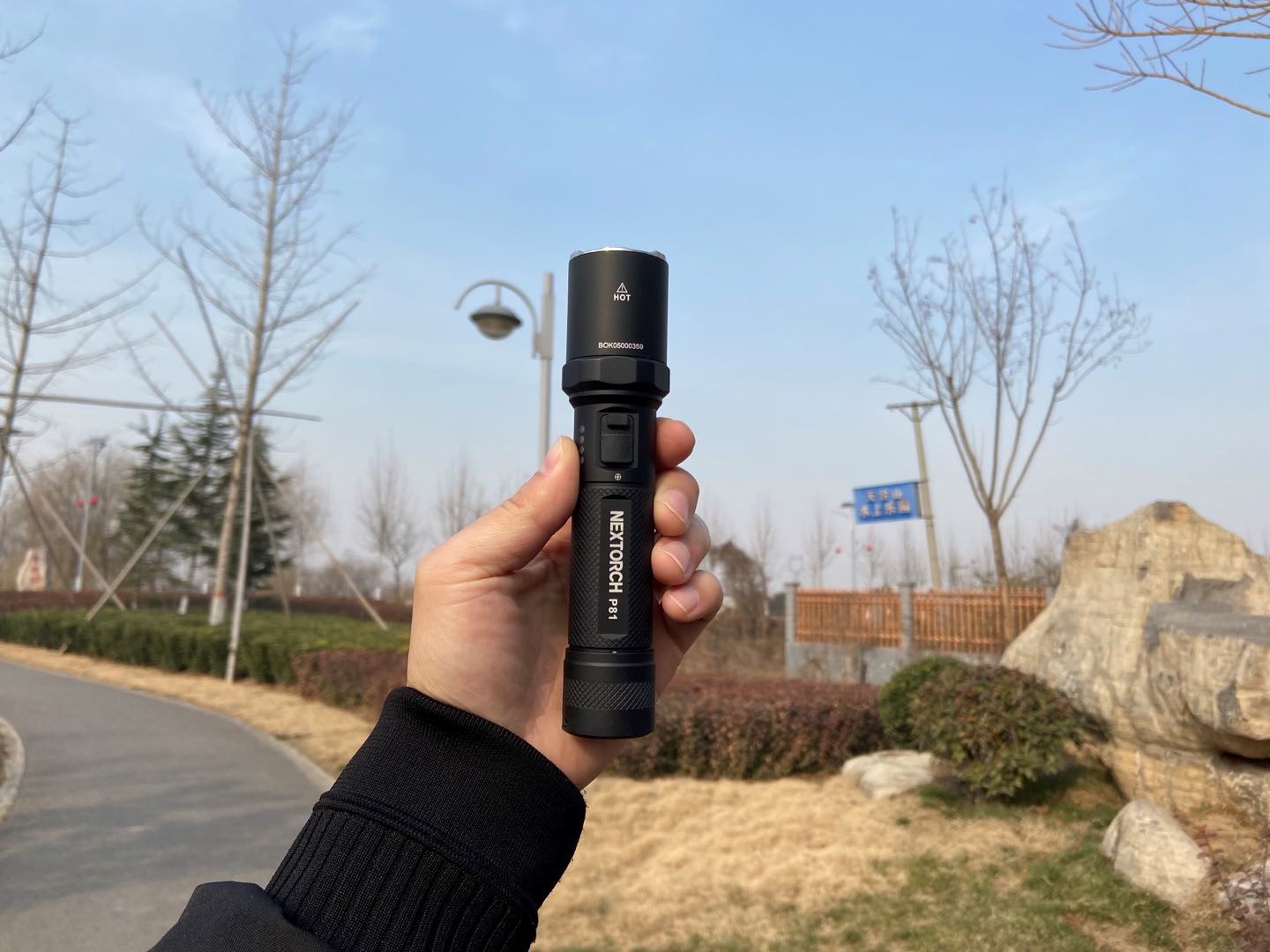 产品尺寸P81全长161毫米,头部直径35毫米,筒身直径28.5毫米,安装电池下的重量为250克左右。从尺寸上来说,算是一把中型手电。