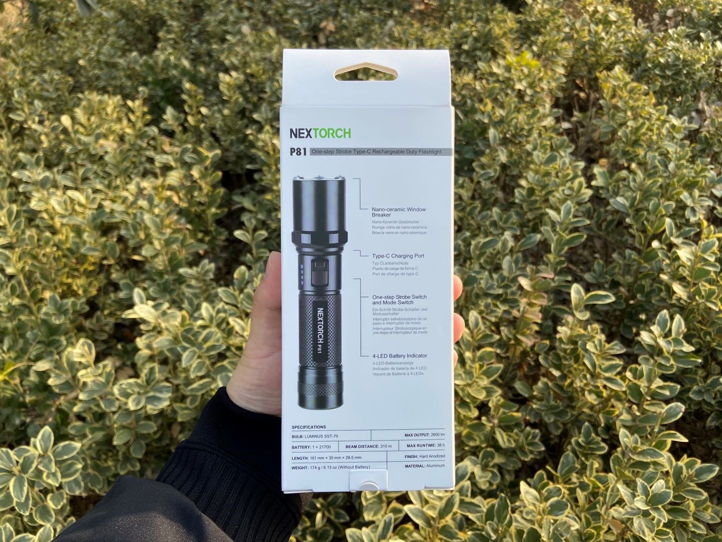 正面的上方印有NEXTORCH的品牌LOGO,下方印有产品的主体照片和产品特点,简单明了。