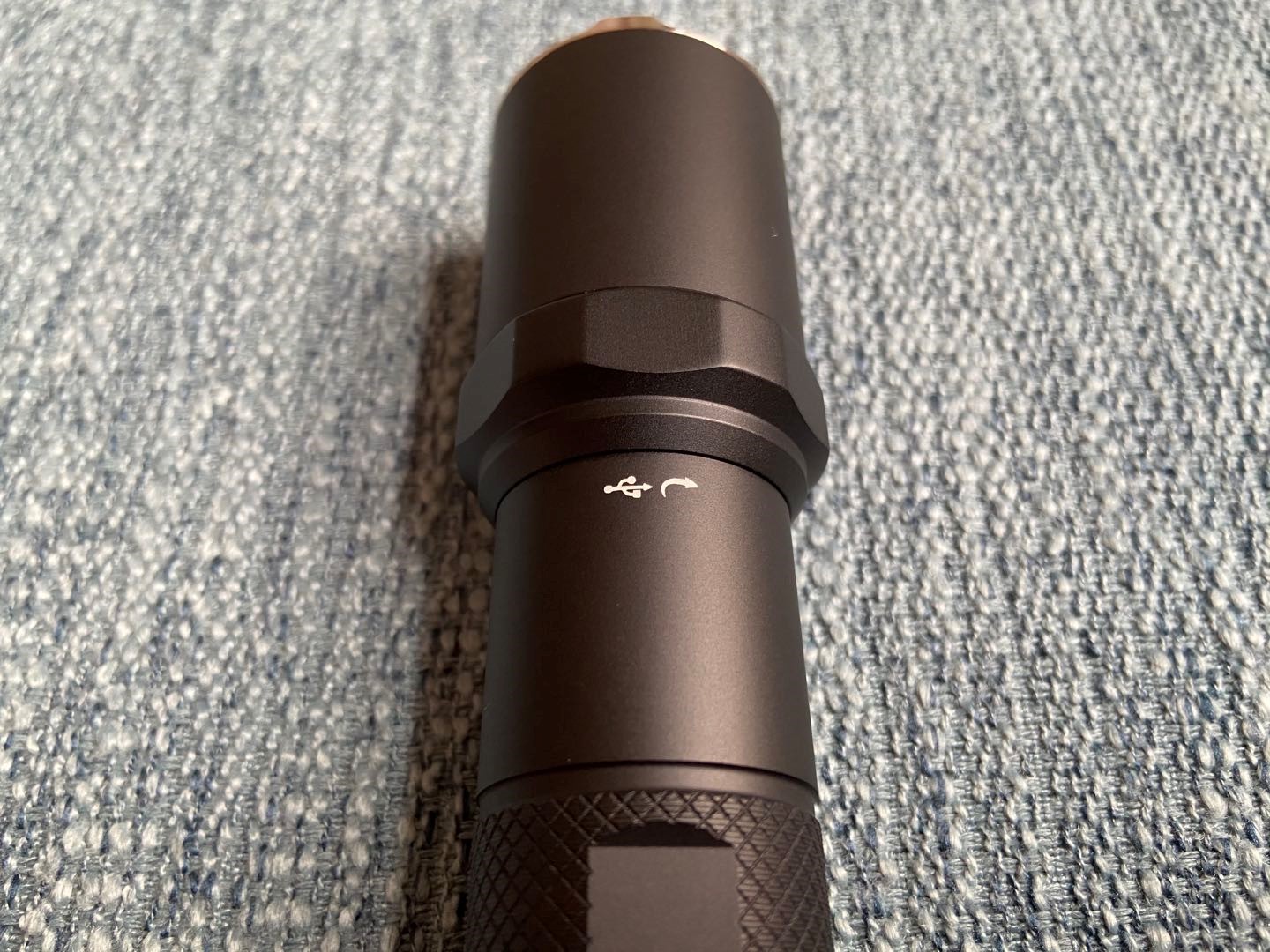 P81的尾盖依旧采用平面的设计,可以倒立使用。在中段的旋转位置设有菱形防滑纹路,以方便拧开尾盖,在侧面也留有挂绳孔,需要的用户可以自行安装。