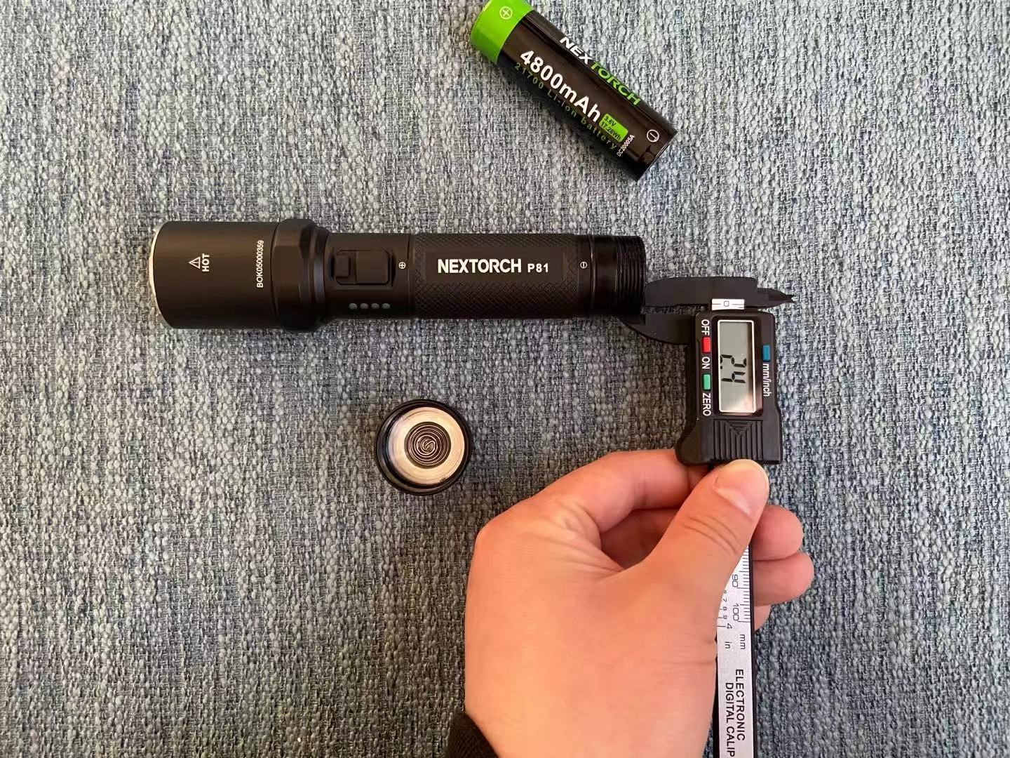 筒壁方面,经实际测量P81筒壁螺纹处的厚度大概2.4mm左右,相对于3mm左右厚度的P80略有减少。主要原因可能还是因为P81升级了21700电池,不得不在筒壁上稍微做一点牺牲。不过品质还是完全没有问题的依旧经得起2米抗跌落。