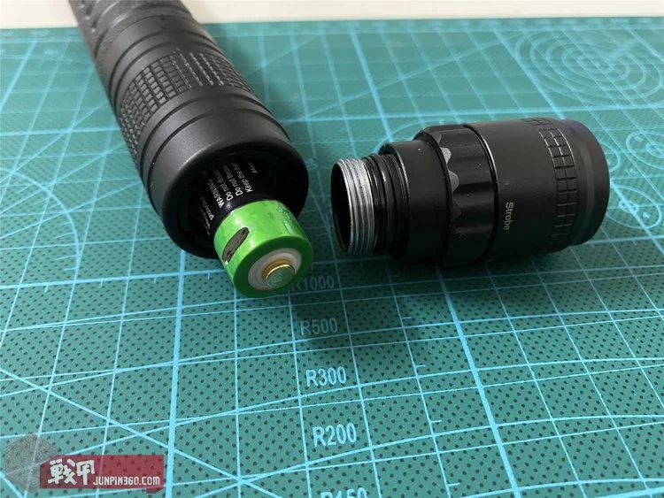 但是影响我给到做工评价的却正是这个电池。在拿到产品第一天,我拆开手电部分尾盖,电池从手电里滑落到木质桌面上,落差也就30cm左右,电池的正极金属触点竟然就脱落了?!