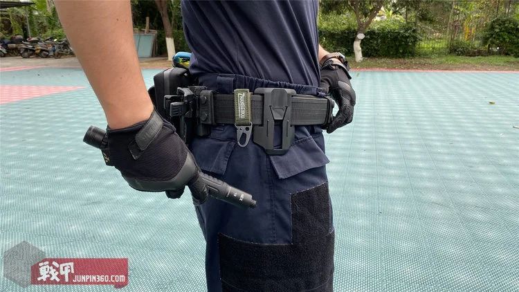 首先是日常携行。这个长度的棍子大多是勤务用,用棍套装带在勤务腰带、背心等装具上。但是因为19存棍加手电的长度比一般的21寸棍要长,无法直接装进适用21寸棍的带盖棍套,必须适用快拔棍套。
