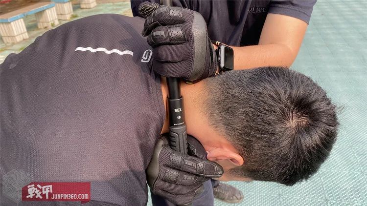 但是因为棍尾有手电部分的重量加持,加上只有19寸的长度,导致开棍击打时,重心更加靠后。