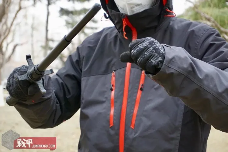 HG1甩棍护手则是今天介绍的重头戏,相信大家都见过大型活动中,警署身后背着的“大宝剑”吧,其实它的学名叫做一体化格挡棍,是为了处突而被发明出来的。但是一体化格挡棍有个致命的缺点,就是体积过大携带不便。所以,可拆卸的护手则应运而生。