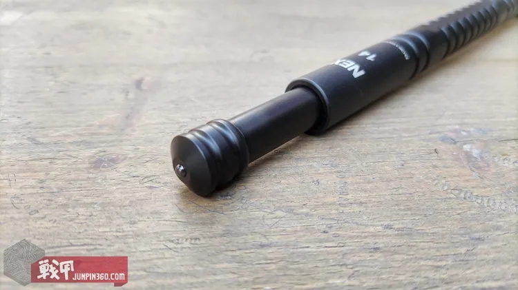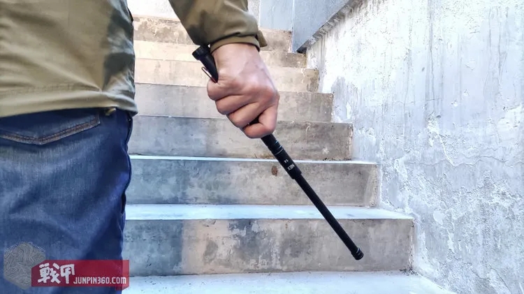 更让我意外的时候,尾部按压开关还带有防误触功能,就是说在开棍状态,无意识触碰解锁按钮也不会收棍,这个是非常有用的设计,尤其是开棍棍头顶端受力时候,及时不小心触碰开关,也不容易解锁。而我在实际使用中习惯用食指来按压解锁,效率更高,保证 足够的按压行程,一步到位。