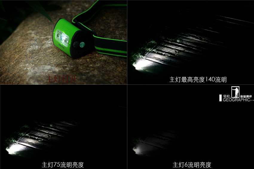 1,主灯采用 LED 140流明最长续航4.5小时 最大射程60米(实测50+米);