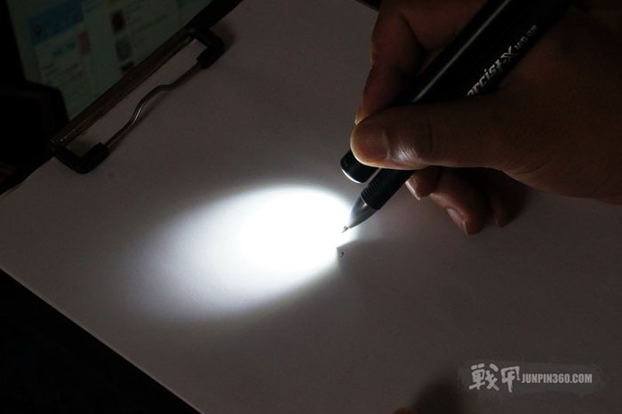 K3长度为15厘米,与一只笔大小差不多,与女人的眉笔放到一起也不突兀。这样的强光手电,给妹子用也是合适的。