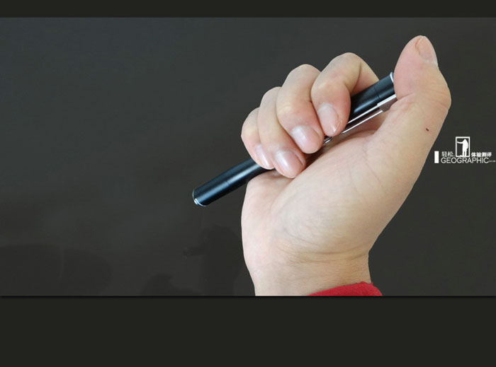展示下纳丽德NEXTORCH钛黑色K3笔形电筒握持操作;可以直观的感受手电的大小比例,签字笔的大小用起来轻便轻巧;尾部按钮为金属镀铬,按压硬度较好;相比较橡胶按钮手感来得更好;
