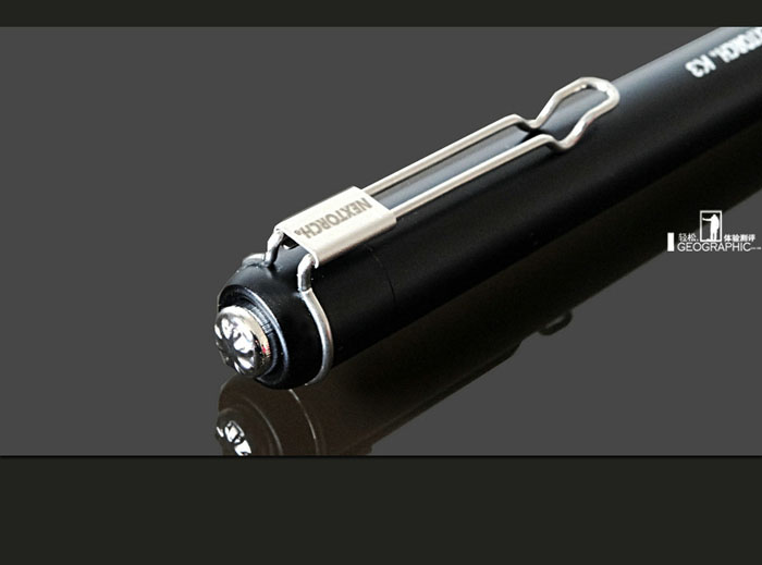 纳丽德NEXTORCH钛黑色K3笔形电筒高韧性不锈钢线夹的硬度较高,为不锈钢材质弹性较好,镀铬处理,正面贴标,作用类似笔夹,固定牢靠。