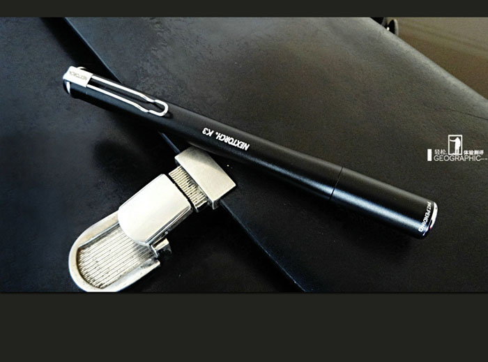 NEXTORCH/纳丽德K3钛黑色笔形手电筒是新推出的一款笔形手电;使用尾部按钮一键控制;大小粗细同普通签字笔的长度相仿,重量为为25g,有着较轻的质量。