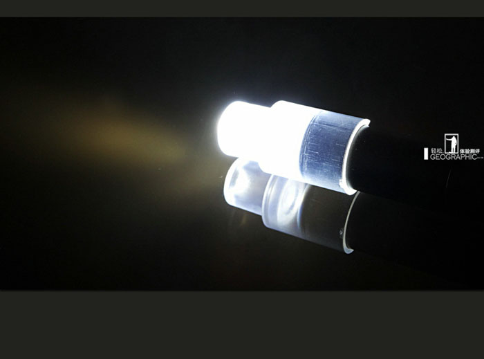 纳丽德NEXTORCH钛黑色K3笔形电筒,使用美国进口的CREE R5 LED,色感白,体积更小;橘皮铝合金光杯设计;在这里展示下K3较小的灯杯和底部的LED镶嵌的细节;