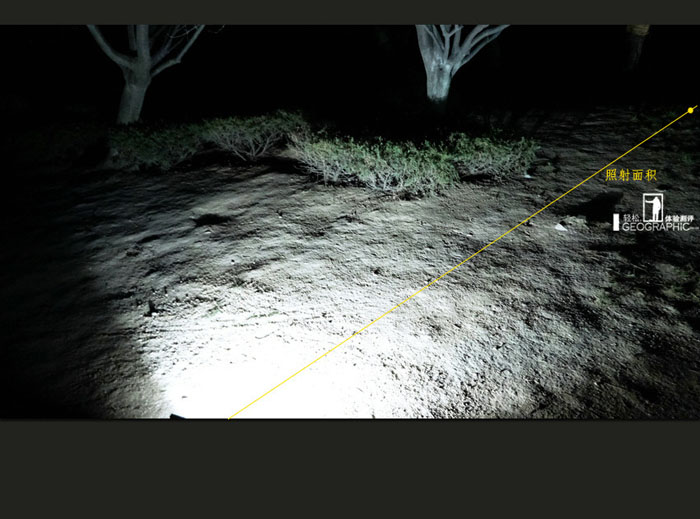 纳丽德NEXTORCH钛黑色K3笔形电筒夜间高亮模式照射区域使用效果,测试如图,在夜间无光环境,测试面积直径达到29m,照射区域较大;
