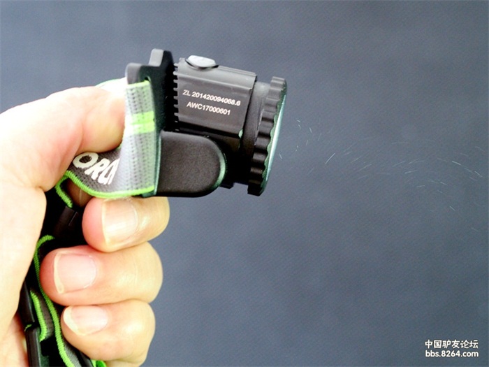 纳丽德myStar旋转调焦USB直充头灯,在头灯的上方,同样有一个灰色的橡胶按钮。打开电源后,轻轻按下按钮,这时发出的是550流明的高亮。如果需要调节亮度,则需要在打开头灯的3秒钟内,再次按下,每按下一次,转换一档,亮度转换是高亮→中亮→低亮→高亮,循环往复。如果打开头灯后3秒钟内没有操作,再次按下则是默认关闭头灯,如想转换亮度需再次打开头灯。打开S.O.S.模式比较简单,只要是在开着电源的情况下,不管头灯是否已经打开,只要长按头灯开关3秒种,S.O.S.就可以打开了。