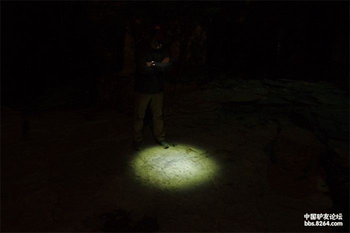 抽时间去韭园溶洞测试了一下,刚开始用的是高亮聚光模式,这样照射距离远,看景物更清晰,大地也是白茫茫的,有种不真实的感觉。后又用中量半聚光测试了一下,这样虽然降低了照射的亮度和距离,但是看脚下的路反而更清晰了。