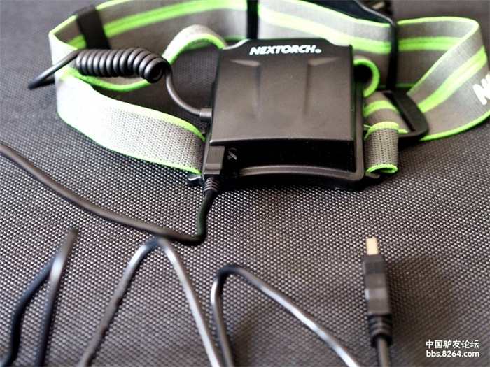 电池的下端,有一个软橡胶封闭的电源插口,当指示灯显示电量不足的时候,可以利用USB充电线,连接头灯和电脑、充电器等电源插口。当充电时,电量指示灯不停闪烁,充满电后停止闪烁。