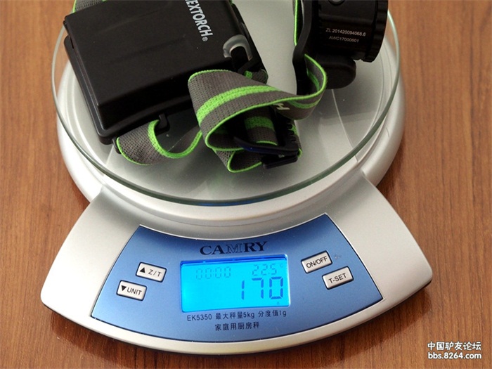我用电子称称了一下这款myStar旋转调焦USB直冲头灯的重量,170克,和说明书标明的一致。