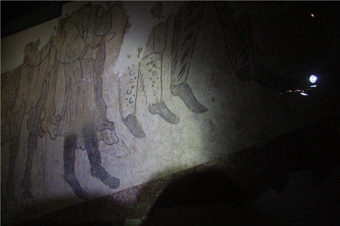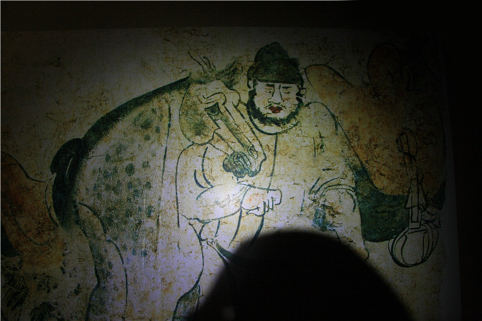 这是墓顶四周代表方位的青龙、白虎、朱雀和玄武图,下图这个绘画的人物比例,动作,前后透视等技法更成熟些。