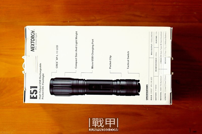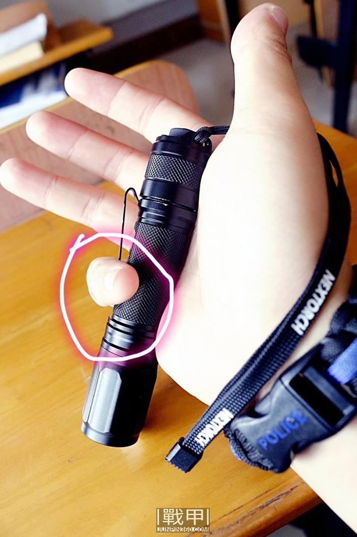 E51的尾部开关与TA5一样都有专属logo宣示主权,但是E51没有TA5的一键爆闪功能,需要轻按按两次才能爆闪
