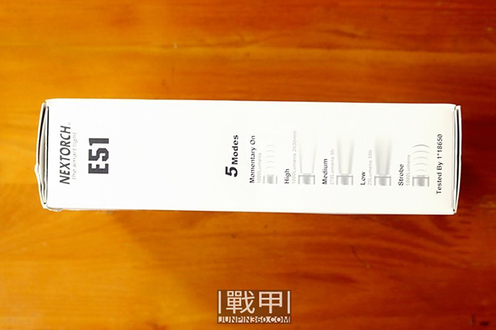 包装的侧面表明了5种模式(高低中亮 点射 爆闪)