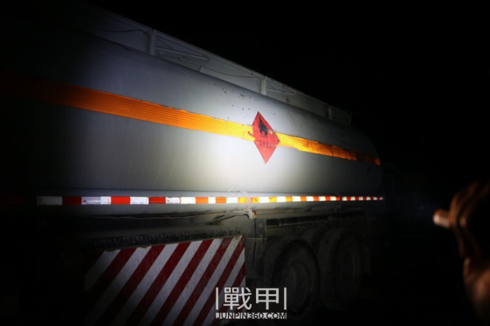 5M距离高亮情况下的照明油罐车的反光条(f/3.5,1/30s,ISO500)